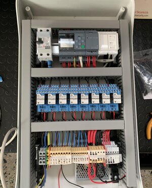 Realizzazione di un quadro per la gestione di un ingresso condominiale con un sistema a PLC.